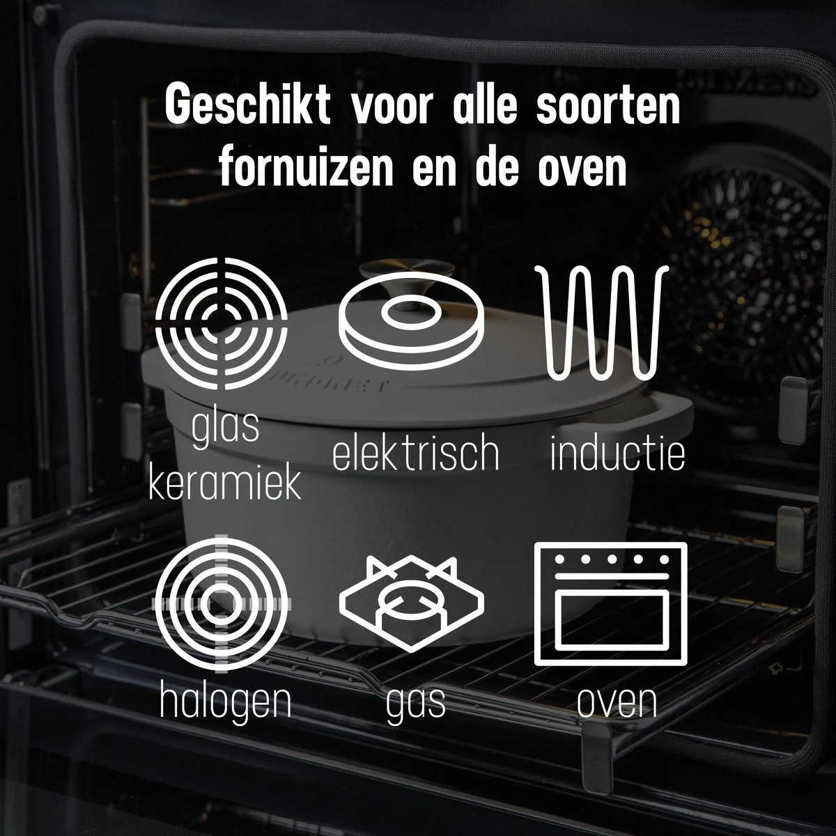 - ENERGIEZUINIG KOKEN: Deze pan is uitgevoerd in hoogwaardig gietijzer, een uitstekende warmtegeleider! De gietijzeren pan en deksel behouden de warmte zeer goed, dit maakt energiezuinig koken een feit.