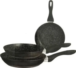 Top kwaliteit koekenpan vervaardigd uit aluminium afgewerkt stenen Anti-aanbaklaag. De marmeren coating van de pannen is zonder giftige stoffen zoals PFOA. Deze anti aanbaklaag bakt niet aan, zeer glad en gemakkelijk schoon te maken.